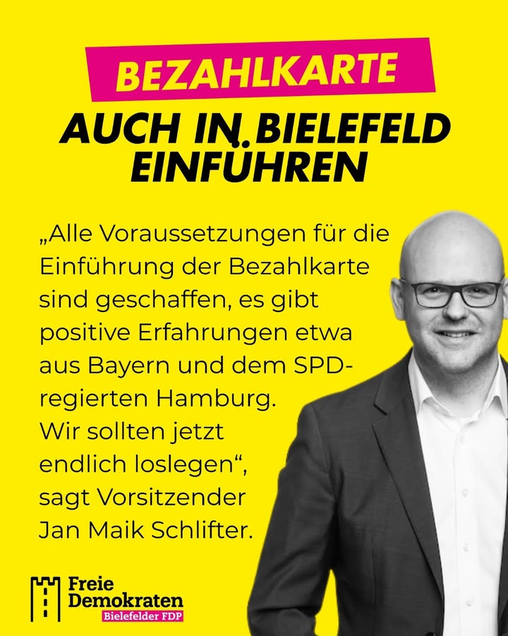 Bezahlkarte jetzt auch für Bielefeld 💳 Missbrauch verhindern, falsche Anreize reduzieren und klare Regeln schaffen – die Bezahlkarte für Geflüchtete ist längst beschlossen und andernorts erfolgreich im Einsatz. Trotzdem wird sie in Bielefeld noch immer nicht genutzt. Wir sagen: Es ist alles vorbereitet. Jetzt muss gehandelt werden. Deshalb bringen wir als FDP die Einführung erneut in den Hauptausschuss. 👉 Für mehr Fairness gegenüber Steuerzahlern 👉 Für einheitliche Regeln statt Flickenteppich 👉 Für eine klare Signalwirkung Bielefeld darf nicht länger warten. #Bielefeld #FDP #Migration #viral #hype