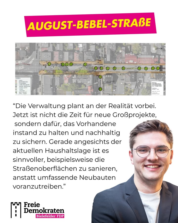 Großer Umbau oder kompletter Neubau der August-Bebel-Straße? Nein! 🚧 Wir müssen in Bielefeld Prioritäten setzen. Statt immer neue Großprojekte zu starten, sollten wir zuerst das erhalten, was wir schon haben. Fahrbahnen erneuern, Schlaglöcher beseitigen, Infrastruktur instand setzen – das ist jetzt entscheidend. 🛣️ Unsere aktuelle finanzielle Lage lässt es schlicht nicht zu, ständig alles neu zu bauen. Vernunft vor Prestigeprojekten. #Bielefeld #Infrastruktur #Prioritäten # Hype #viral